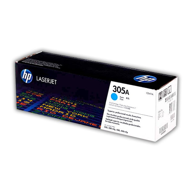 HP 305A (CE411A) Original Cyan Toner Cartridge – Compatible with HP Color LaserJet PRO 300, 400 series, M451, and M475 models. This genuine toner delivers vivid cyan prints with excellent color accuracy, ideal for professional documents and marketing materials. It ensures reliable performance and consistent, high-quality color output.
