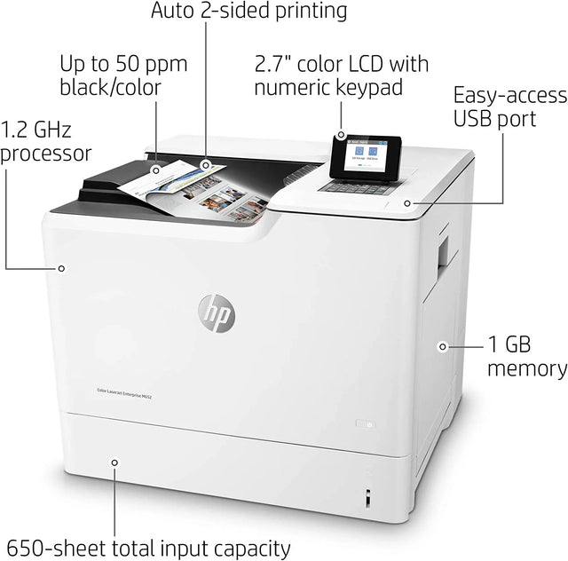 • Functionality: The M652dn is a robust printer engineered for high-volume, high-quality color printing. It is designed to handle the demands of busy office environments, delivering professional results with speed and efficiency.