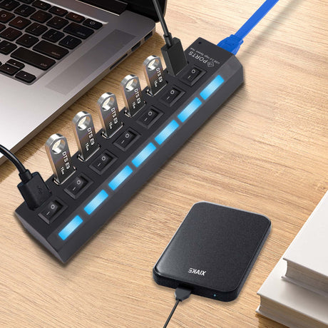 7-Port USB 3.0 Hub with Individual Power Switches for Each Port